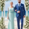 Vestido largo liso con cuello doble al bies y pliegues en cintura.