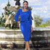 Nos encantan sus mangas 3/4 con hombros rizados.