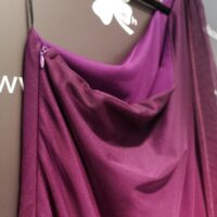 Hombro derecho con caída de capa (posibilidad de usar en el cuello como fular).