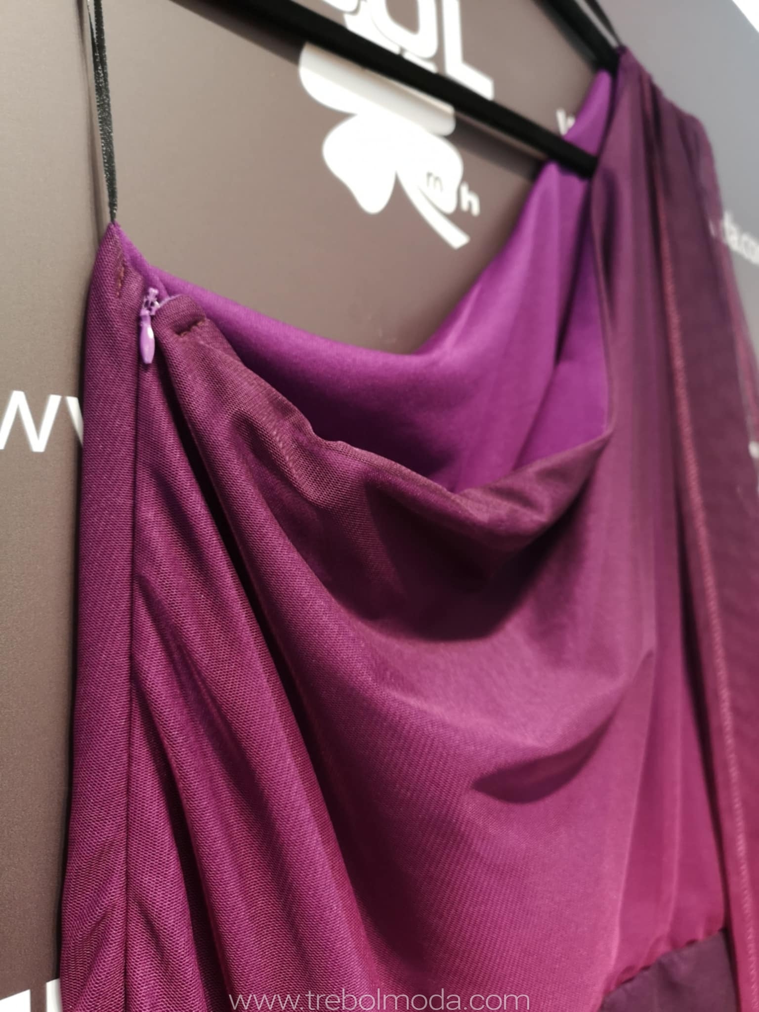 Tejido de tul (100% poliester)degradado en tonos purpuras-berenjenas.