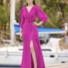 Con un diseño atemporal con detalles florales en la cintura, este vestido con falda de corte recto, en color fresa, es perfecto para madrinas que buscan elegancia discreta.