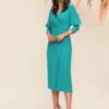 Ideal por sus mangas 3/4 y su falda de capa midi