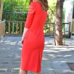 Vestido sencillo con mangas al codo. Cuerpo entallado y ajustado a la cintura.