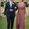 Este vestido fluido con falda de capas de gasa es ideal para madrinas que buscan una combinación de sofisticación y movimiento. El tul bordado en las mangas crean un efecto visual impactante, mientras que el escote en V añade elegancia. Las capas, muy de moda esta temporada, aportan un toque actual y permiten un movimiento fluido.