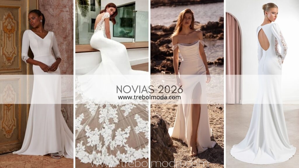 • Crepé: Para las novias que buscan un look minimalista, sofisticado y con caída.