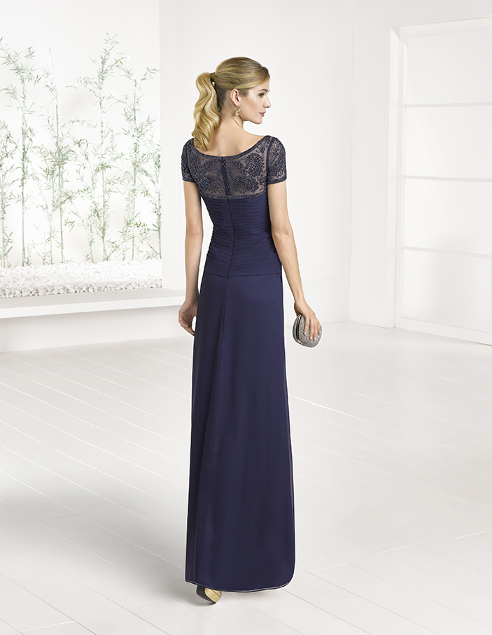 Vestido de gasa con manga corta bordada en pedreria