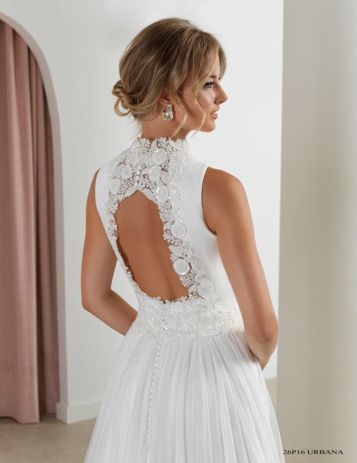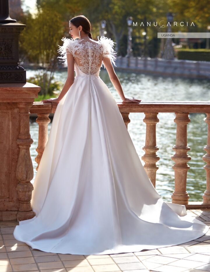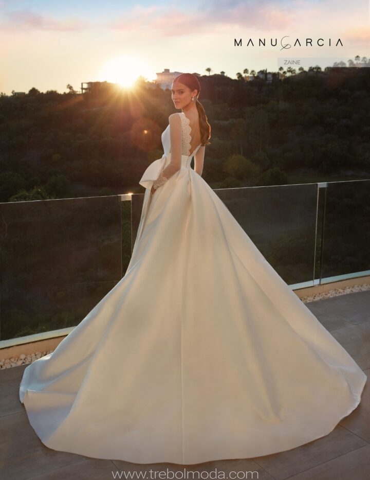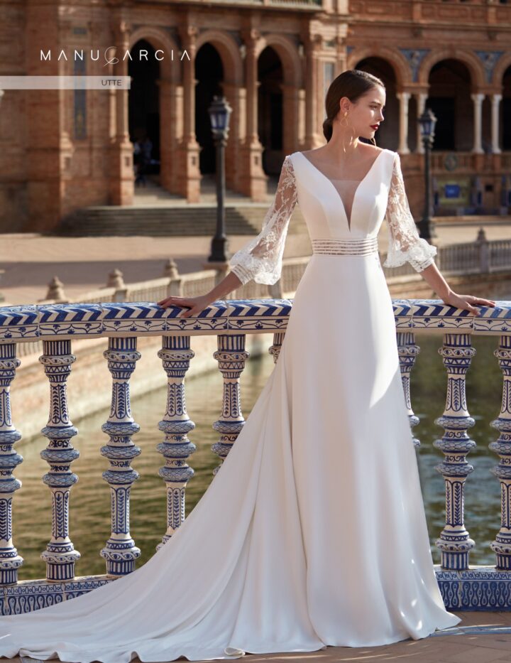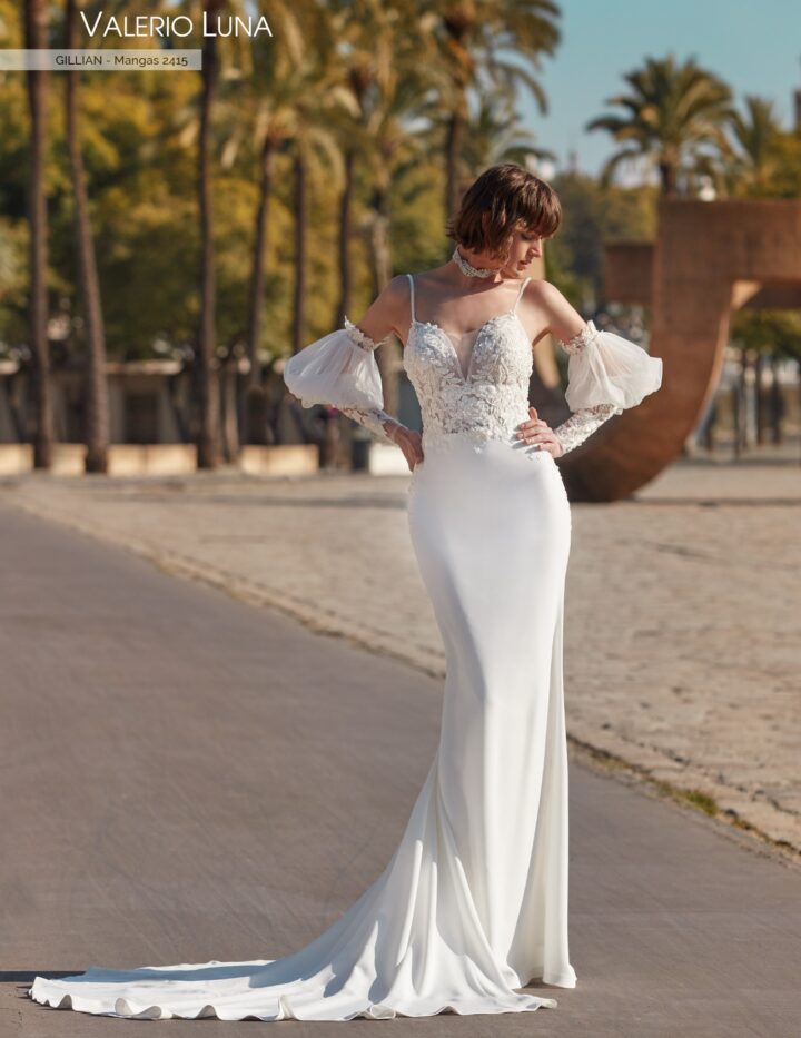 - Mangas de encaje o tul: Una opción clásica y atemporal, perfecta para bodas religiosas, que añade un toque de elegancia y delicadeza.