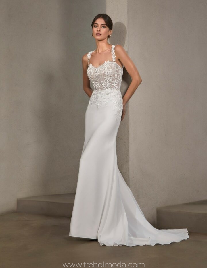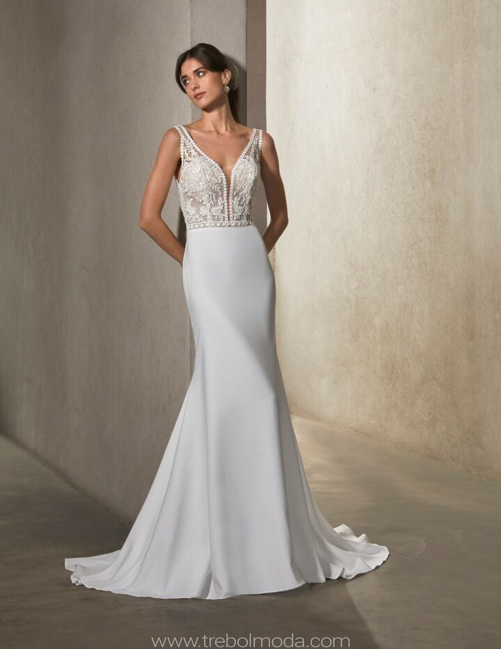 - Crepé: Para las novias que buscan un look minimalista, sofisticado y con caída.
